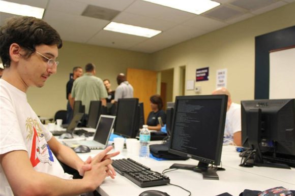 Around 15 programmers stopped in to code during the Hack-a-thon, while others worked remotely, says Hillsborough County Economic Development Manager Stephanie Ashley.