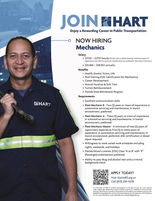 It’s been “a little bit” harder to recruit at the Hillsborough Area Regional Transit Authority, according to Brian Abrams, bus transportation manager.