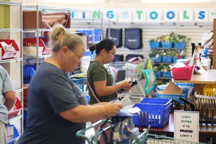 Hillsborough public school teachers and instructional staff like guidance counselors and social workers can go “shop” at the Teaching Tools Resource Center up to twice a semester and four times a school year. During the 2023-24 school year, the store distributed more than $3.4 million in school supplies and classroom materials to more than 3,100 teachers, averaging out to $475 per teacher per trip.