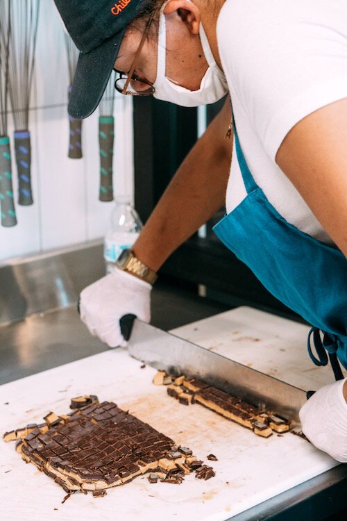 “Ours [cookie dough] is unique because most cookie doughs that they sell in the store … it’s not bakeable,” says Barsi, Metropolitan Ministries VP of Social Enterprise and Food Services. “You can eat ours and, if you have leftovers, you can take it home and put it in the oven and bake cookies.”