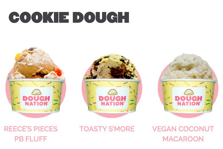 Some cookie dough flavors include sugar cookies, toasty s’more, sweet and salty, and red velvet. Ice cream flavors include mint chocolate flakes, sea salt caramel with praline pecan, and butter pecan. The team makes a monthly “Dough over the top” shake with January’s being “Survived 2020.” Enjoy a cookie melt, Sunday nation, dough shake, or all of the above!