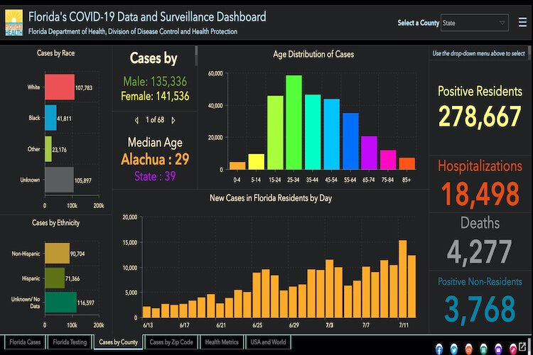 Dr. Pidala: First, from the Emergency Department perspective, 2-3 months ago our volume was down 40-50% with people being afraid of COVID. Now, we’re back up to 80-90% of pre-COVID volume and with a much higher proportion due to COVID. Before, patients didn’t come from fear of COVID; now they’re coming because of COVID. Starting from about mid-June, our volumes began to increase. As you can see from watching TV, the number of patients testing positive, as well as hospitalizations, has greatly increased since the state opened up with bars and everything else.