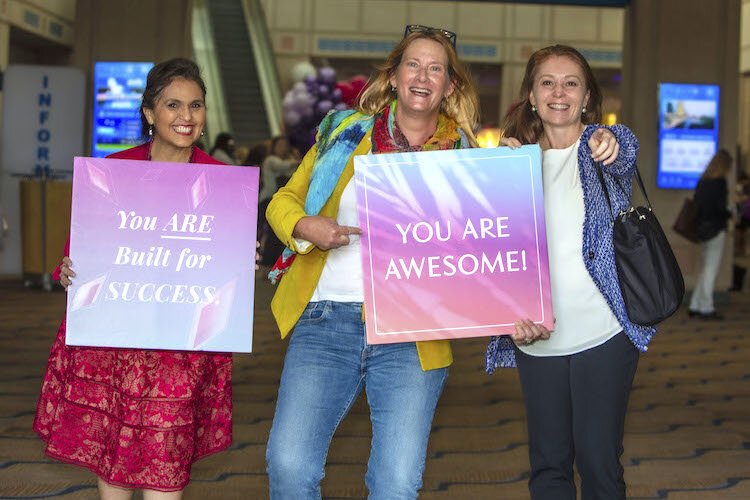 Photo by Kimberly DeFalco – Laura Zarrate of Athena CPA poses with one of the many inspirational messages and props distributed throughout the Convention Center.