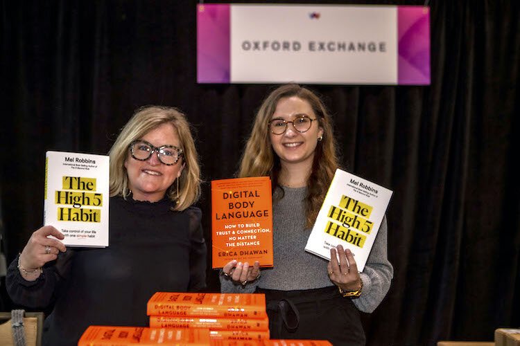 Photo by Kimberly DeFalco – Oxford Exchange associates Laura Taylor and Kassie Weeks sold copies of keynote speakers Mel Robbins and Erica Dhawn’s books.