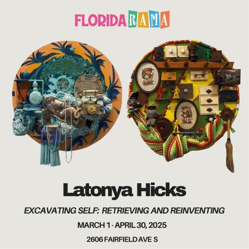 “Excavating Self: Retrieving and Reinventing,” a solo exhibit by Tampa Bay artist and educator Latonya Hicks is at FloridaRAMA, 2606 Fairfield Ave.S. in St. Petersburg, through April 30th. There is an artist conversation with Hicks from 6 p.m. to 8 p.m. on April 3rd.
