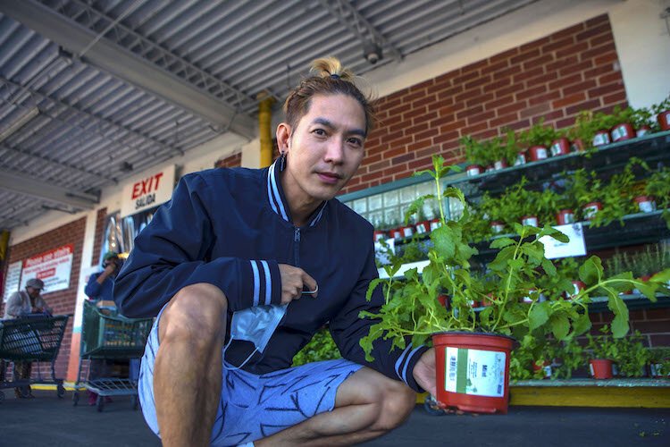 Photo by Kimberly DeFalco – Customer Tuan Dang, who lives less than a mile away, says shopping at Sanwa for mainly fresh fruits and vegetables makes him happy.