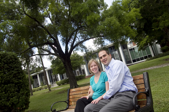 The University of Tampa has plenty of striking locations to sneak away for a memorable proposal – beautiful gardens, a conversation-starting sculpture Sticks of Fire and romantic Plant Park. UT alum April (Gillespie) Jones remembers when now-hubby Adam popped the question one January evening when they stopped by to see a friend on campus. “We started walking back through the park near the bench where we shared our first kiss. And that’s where he proposed,” she says. “It’s such a pretty place, and you’re somewhere that means something to you — it’s where we met, where we spent four years of our lives. It was absolutely the perfect place.” The two celebrate their second wedding anniversary this summer.