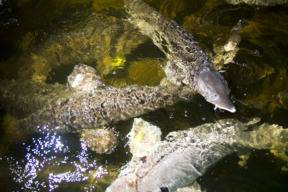 The freshwater sturgeons are part of a full-scale sustainable farm and commercial demonstration program. According to Mote estimates, about 85,000 pounds of sturgeon meat and 1.8 metric tons (about 54 million eggs) of caviar were produced at the park in 2011.