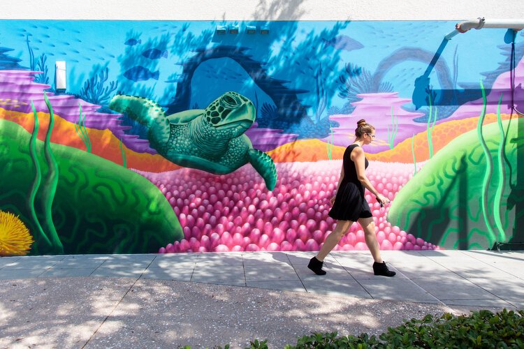 Donnelly’s murals are in the downtown St. Petersburg area but also at Tropicana Field, the Sirata Beach Resort in St. Pete Beach, and at the St. Petersburg Museum of History. He also has murals in Miami’s Bird Road Art District and Wynwood Business Improvement District.