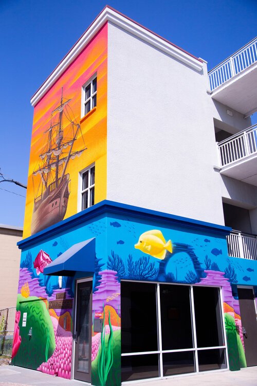 He shifted his eye toward Tampa in 2019 to receive grants from the Downtown Partnership and the CDCA for “Timeless Bay.” His underwater sea world with a pirate ship sailing above is at 1000 Channelside Drive, near The Florida Aquarium.
