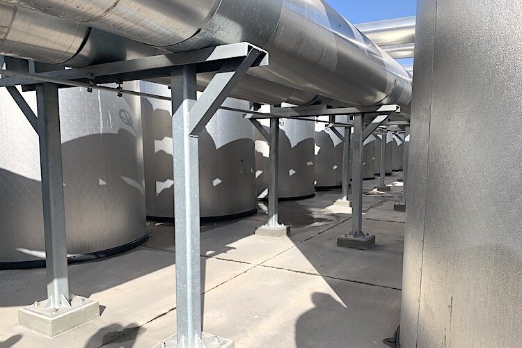 “So, the cooling load will shift to where the people go in a given day – to the office in the mid-mornings through afternoons and to the bars and restaurants later in the evenings.” Koontz remarks such a system, which aggregates the cooling needs of an entire network of buildings, can reduce cooling needs by 30% to 40%, making it far more efficient than individual cooling plants for separate buildings.