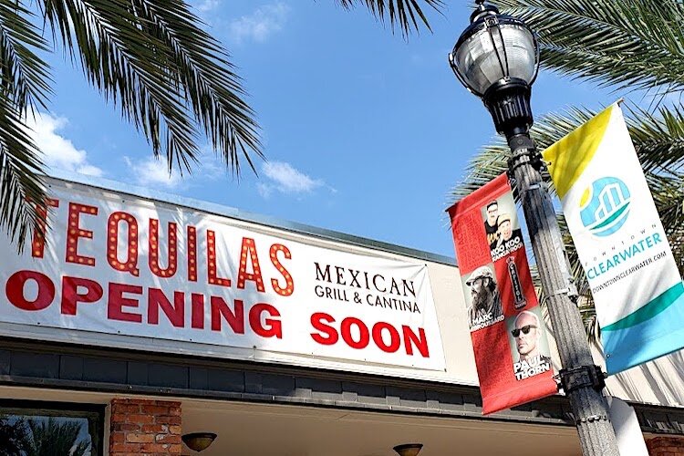Photo by Julie Garisto – Signage announcing new restaurants is common in downtown Clearwater.