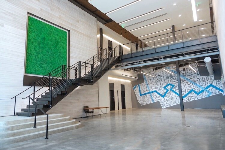While the development projects are works in progress, some public art is already on view. Look up when visiting Sparkman Wharf at Water Street Tampa to see Tavares Strachen’s You Belong Here neon piece shining over the buzzing urban scene. In addition, developer Strategic Property Partners is displaying local artist Ya La’ford’s “Waterfrontier’’ immersive map mural adjacent to Bosco Sodi’s painting called “All the Mornings of the World’’ in their lobby. These works were selected as part of a partnership between USF’s Graphicstudio team and SPP to pick or commission culturally meaningful works to bring to Tampa.
