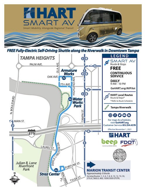 The Tampa Riverwalk isn’t just for pedestrians and bicyclists anymore. Be on the look out and hop onboard a new smart car offering driverless ride-along service around a portion of downtown. The vehicles are on a temporary trial to collect data and provide HART with options for the future. Read the complete story.