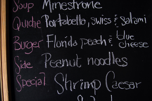 Menu choices change seasonally and include items such as a roasted eggplant sandwich with herbed goat cheese and arugula on focaccia ($8), a toasted pecan-grape curried chicken salad on honey whole wheat ($8), a tuna-apple-walnut salad sandwich ($8), and a sweet potato-apple soup with crème fraiche and gruyer crouton ($4 a cup, $6 a bowl).