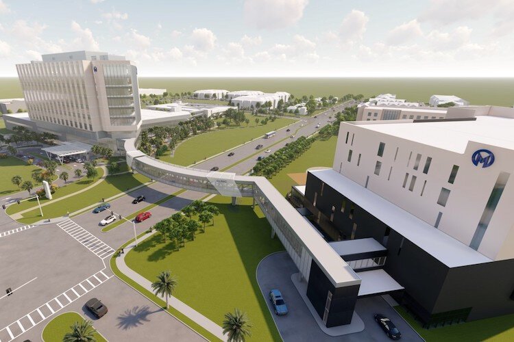 Despite encompassing a facility that appears to dwarf the original six-story core hospital and inpatient bed tower at the USF campus, Futrell says the McKinley project is an expansion of the existing 1986 facility on USF’s Magnolia Drive, “not a replacement.”