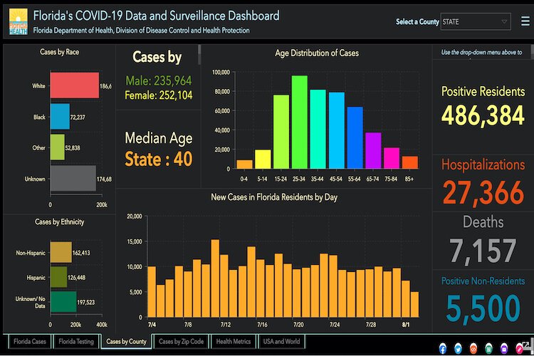 Florida Department of Health – COVID-19 cases in Florida as of Aug. 3, 2020.