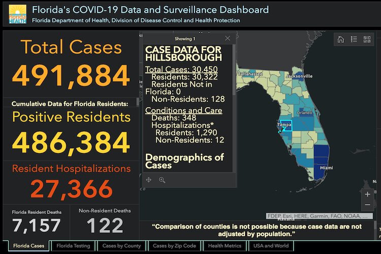 Florida Department of Health – COVID-19 cases in Hillsborough County (Tampa) as of July 21, 2020.