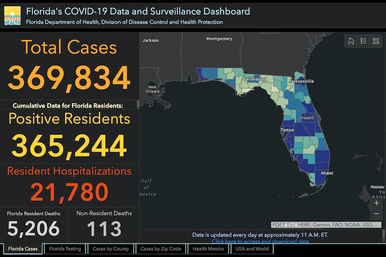 Florida Department of Health – COVID-19 cases in Florida as of July 21, 2020.
