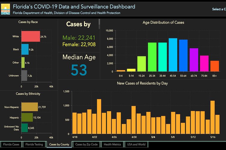 Breakdown of COVID-19 cases in Florida as of May 18, 2020.