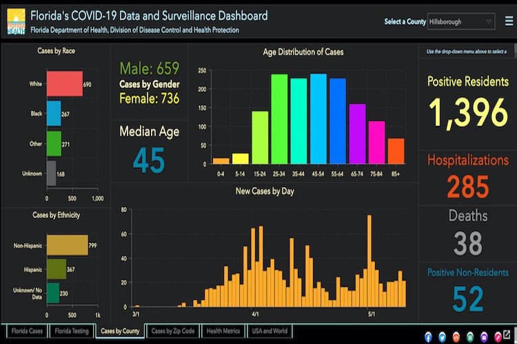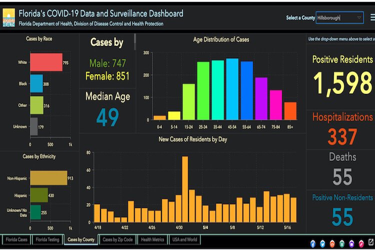 Florida Department of Health, Division of Disease Control and Health Protection – Hillsborough County COVID-19 cases as of May 11, 2020.