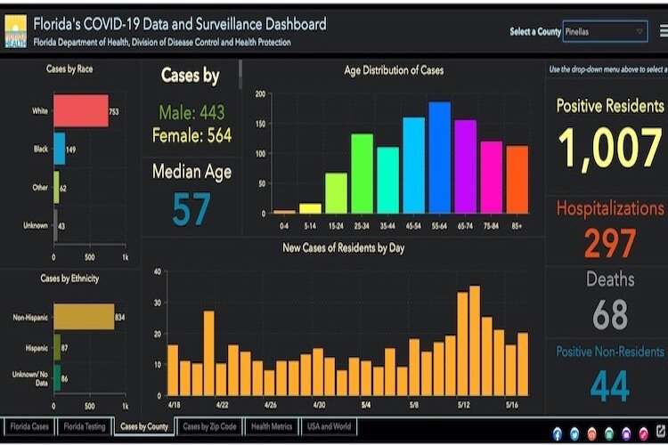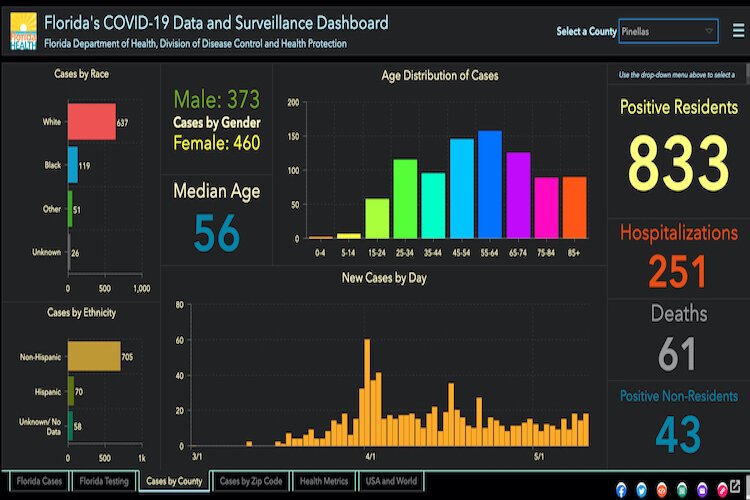 Florida Department of Health, Division of Disease Control and Health Protection – Pinellas County COVID-19 cases of May 11, 2020.