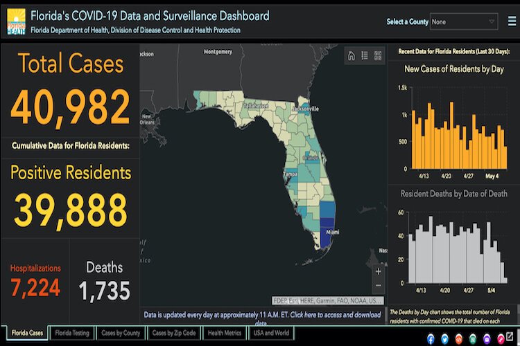 Florida Department of Health, Division of Disease Control and Health Protection – Florida COVID-19 cases as of May 11, 2020