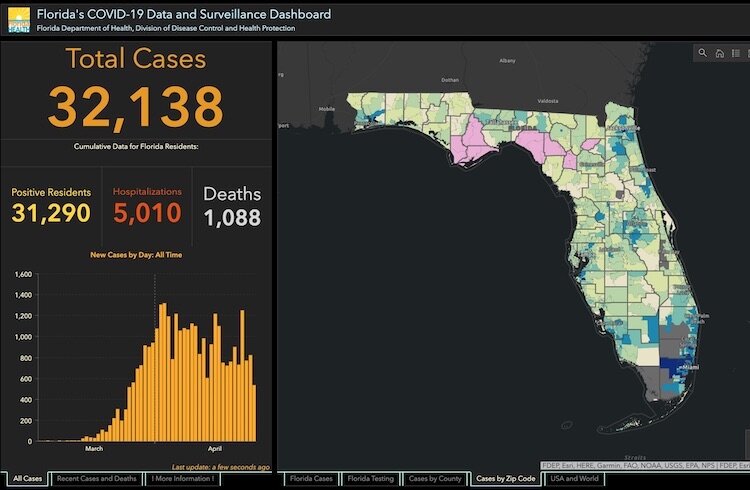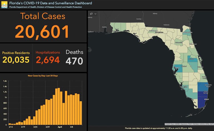 Florida COVID-19 cases as of April 20, 2020.