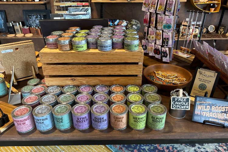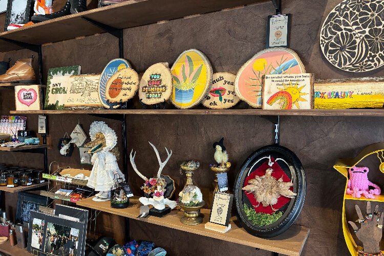 “Every vendor that you see is a local business,” Glade says. “We really want to do as much as we can to support local businesses and make it as affordable as we can for everybody to be in the store. We have art. We have jewelry. We have candles, taxidermy, soaps, tees, some food products. We have baked goods, plants, everything you can think of for gifts. We want to reach local customers and also travelers looking for cool souvenirs from the area, some unique stuff that you can’t just get anywhere.”