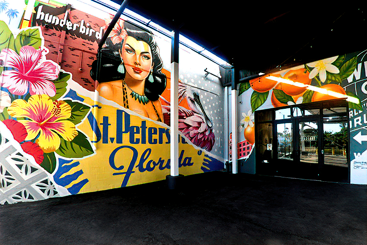 Johnny Vitale and Sionna “Sio” MacLeish’s mural at the Factory St Pete in the Warehouse Arts District pays tribute to St Petersburg and features, among other things, another iconic bird, the roseate spoonbill. Johnny Vitale also painted another mural on the 600 block of Central Avenue.