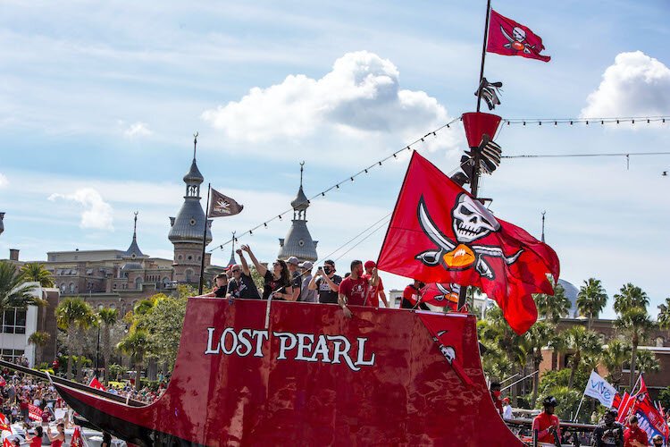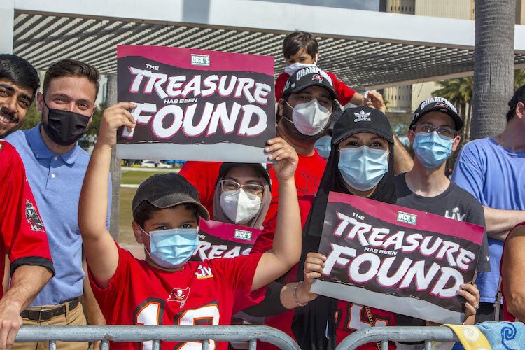 Tom Brady, the Gronk, Mike Evans, Leonard Fournette, Coach Bruce Arians, and other fan favorites tossed footballs into the crowd, downed a few beers, posed for pictures, and waved pirate flags in a frenzy of excitement and community pride. The Bucs win followed by a boat parade matched a similar tribute for the Tampa Bay Lightning’s win of the Stanley Cup in September.