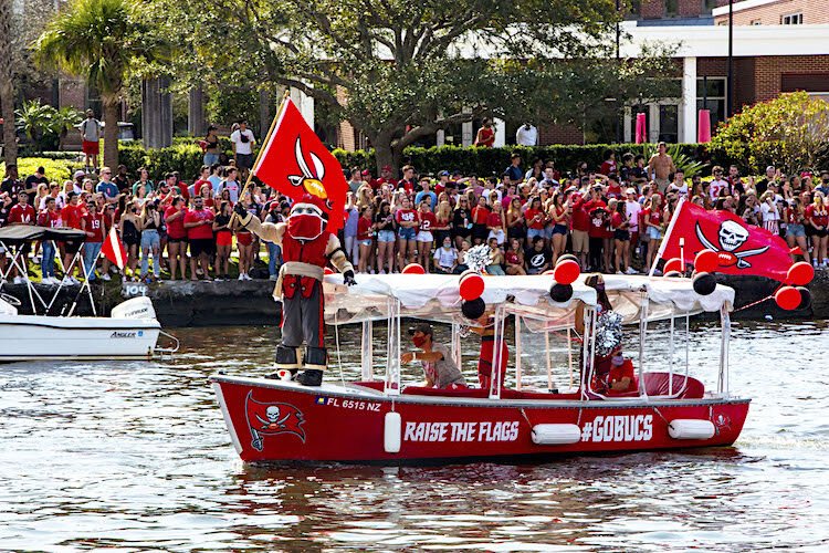 Bucs players, coaches, and their families could be seen riding in a parade of boats that stretched 3 miles from Armatureworks to the Florida Aquarium and Port Tampa Bay. The outdoor spectacle was designed for maximum attendance and safety in Tampa’s amazing 83 degrees winter weather while trying to keep everyone at a social distance due to COVID-19.