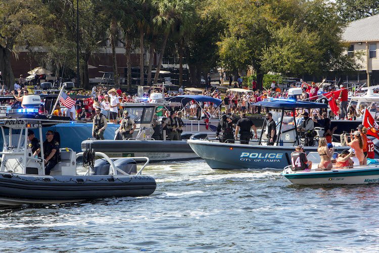 Photos by Kimberly DeFalco – Law enforcement officers showed up in force for the boat parade honoring the Bucs.