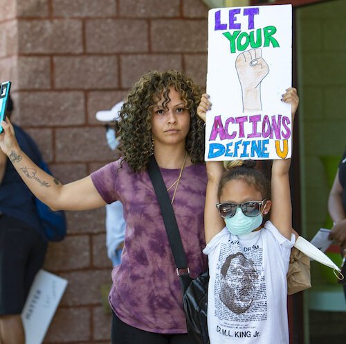 Photo by Kimberly DeFalco – Amber West, 37, and her daughter, Allyana, 7, of Tampa, felt an urgency to speak up. “I want her to defend what’s right,” Amber says.