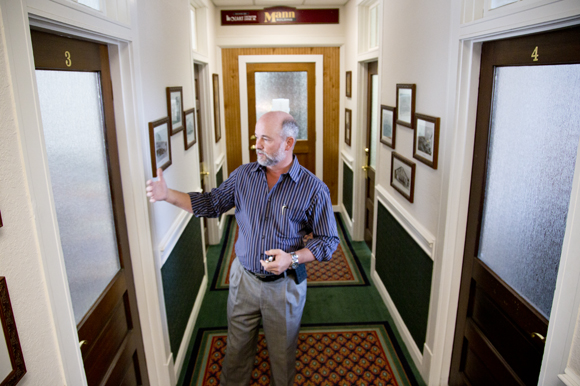 With a plan for marketing most of the structure for professional office space, Verner set about bringing the Lee up to modern standards, with climate control, an elevator, fire prevention sprinklers and new windows. He says skepticism mounted as he invested hundreds of thousands of dollars into remodeling, which took about 1 ½ years. “The day they believed was the day we put the awnings on,” he says, referring to the eye-catching green-and-white shades that mark the building today and cost around $7,000. “That always made me laugh. … I should have done that on Day Five.”