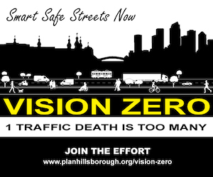 The April 25 workshop is the third in a series of public workshops being held by the Hillsborough MPO Policy Committee as part of the Vision Zero initiative to reduce traffic injuries and fatalities on Tampa area streets to zero. By design, Vision Zero focuses on a framework of data-driven efforts to educate motorists, cyclists and pedestrians about sharing roadways safely; encourage community engagement with local policy-makers to create connected and walkable neighborhoods; enforce equitable laws for safe motorist and pedestrian behavior, and implement multimodal design policies for pedestrian and bicycle-friendly roadways.
