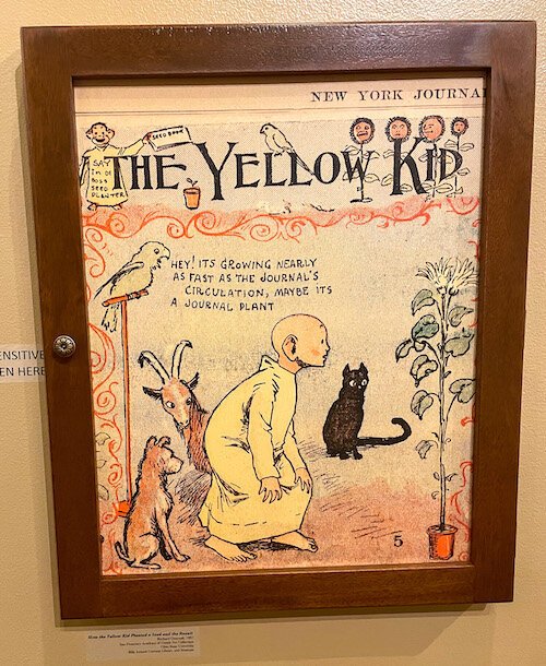 Curated by Dr. Charles McGraw Groh of The University of Tampa, the exhibit invites visitors to explore the effects of yellow journalism on democracy during critical moments in history. The term “yellow journalism” stems from cartoonist Richard F. Outcault’s character “Yellow Kid,” which was originally created for Joseph Pulitzer’s New York World. William Randolph Hearst realized the success of the use of color in comics and convinced Outcault to bring the character to the New York Journal. The tense rivalry between the two publishers translated into the character becoming a symbol of sensationalism in journalism. When attendees enter the Stop the Presses! exhibit, they will be met with original images of the character Yellow Kid by Outcault.