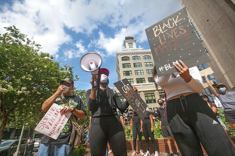 The protesters were demanding change following the killing of George Floyd by police in Minneapolis.