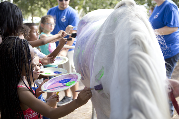 In the beginning, the program was just three days a week, a few horses, fellow equestrians who shared her passion and a handful of students offering assistance. Nearly 80 clients from Hillsborough, Pasco and Pinellas counties came out to the farm that first year of operation for therapeutic horse riding. By last year, that number had grown to 1,500 – using just under 5,000 units of half-hour services, ranging from kinesthetic therapy to carriage driving overseen by a fulltime and part-time staff of 13 and 600 volunteers. The farm has also evolved into a popular venue rental, and is available for free group tours.