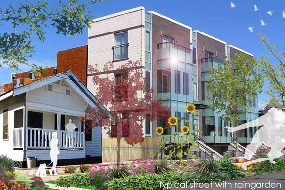 Their plan also incorporates green roofs, solar panels, rain gardens and improved transit corridors.