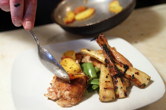 Once they know what raw materials they’ll be working with each week, they put their heads together with sous chef Eddie Shumard to concoct inspired dishes.