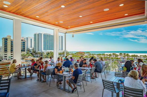 The most “stunning” features of the new restaurant are the unobstructed, panoramic views, says Greg Powers, CEO and co-Founder. “You have a 360-degree view of Clearwater Beach from the rooftop.” Floor-to-ceiling second-floor windows also provide “gorgeous views” to indoor diners.