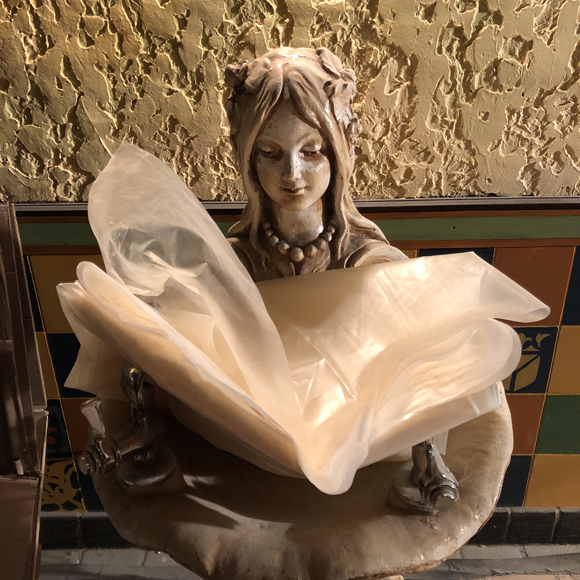 The lobby will be the first dramatic upgrade you’ll notice. Significant attention has been paid to the wall plaster, its myriad embellishments, and whimsical adornments like gargoyles and bird cages. Forensic paint matching, a slow process of carefully removing layers of old paint, has revealed a vivid palette of greens, blues, reds, and yellows, which enliven the space tremendously.