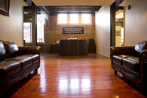His firm’s office takes up most of one floor. McIntyre says he bought the building mainly because he couldn’t predict how quickly his firm might grow, and didn’t want to sign a lease for office space.