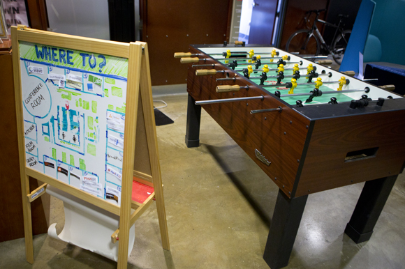 It’s in a space formerly occupied by an architectural firm, which designed the space with an ultra-modern, industrial look, with curved walls, round rooms and a bare floor.