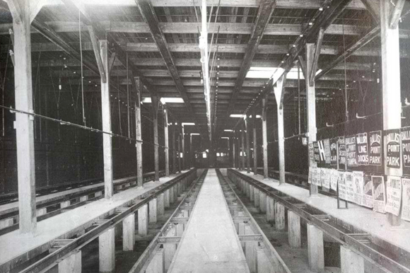 The new car barn could easily accommodate every streetcar in Tampa Electric’s fleet at that time, which numbered between 20 and 30 cars. The maintenance area included tracks over a sunken space where workers could inspect and repair cars from below without having to raise the cars or have the works lay down under them. Large cranes, the tracks of which are still visible in the building, could lift car bodies as well as entire cars off the tracks. The building also included office space, a restaurant, meeting space, and a theater “for lectures for the benefit of [the] employees” as well as for “practical demonstrations … to acquaint each conductor and motorman in the smallest detail of their work.”