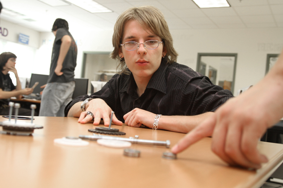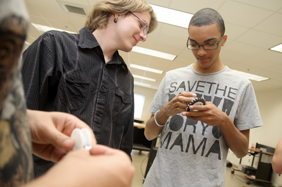 Aaron Holland was brought into the engineering lab by his cousin when he was a freshman and jumped right into the world of robotics. “The first day I was up here they let me drive the robot and I thought that was the coolest thing,” he says. Holland, a senior at NCT, never showed any interest in electronics before that day and concentrated on athletics instead. At first he struggled to grasp the ins and outs of a fast-paced robotics competition when he joined the team.