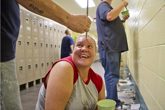 She turned to Pam Miles, a master artist and teacher at several art centers and schools for students with learning disabilities. At her first visit to the shelter, Miles says she felt overwhelmed and claustrophobic. The long hallways had no windows. Everything was concrete. Nothing was organic. Something had to change.