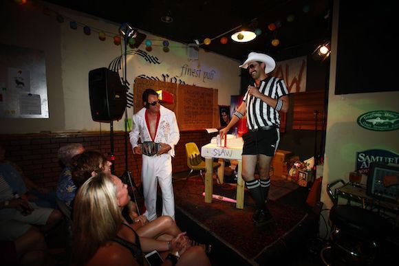 Madame V. placed a call to arms, recruiting four wrestlers, a ref, ring boys and a volunteer support crew for the inaugural SLAW ‘Backyard Brawl’ in March, which raised just under $2,500 for Planned Parenthood of Southwest Florida. The second SLAW brawl in June — a benefit for Sarasota-based LGBT peer support organization, ALSO Youth — raised $5,300 during the two-hour, eight-wrestler showdown.