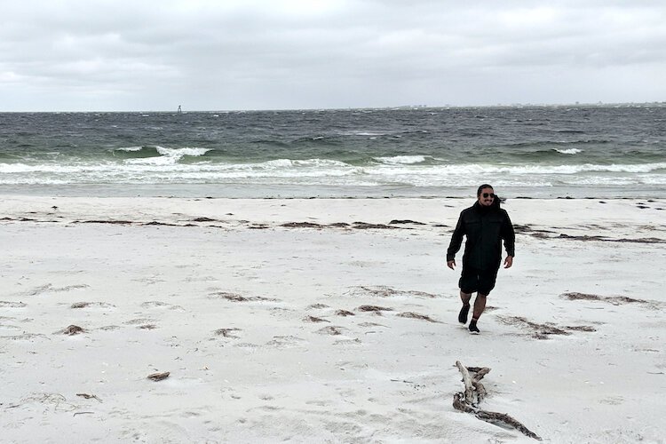 Courtesy of Dave Scheidecker – Quenton Cypress, Community Engagement Manager for the Seminole Tribe of Florida, strolls the beach at Egmont Key.
